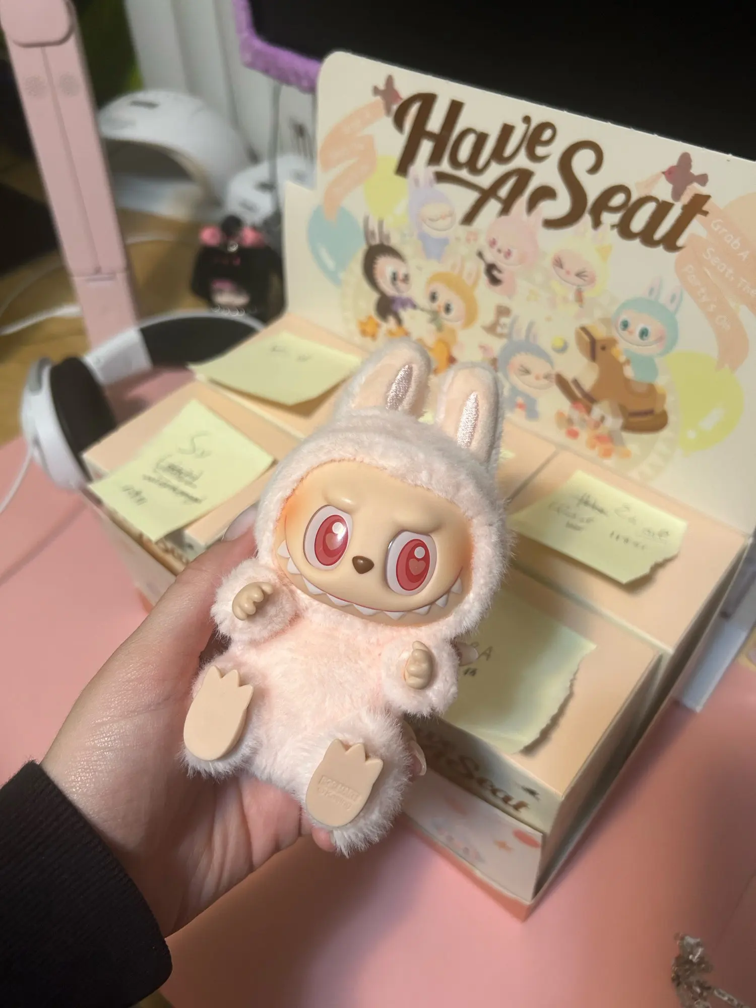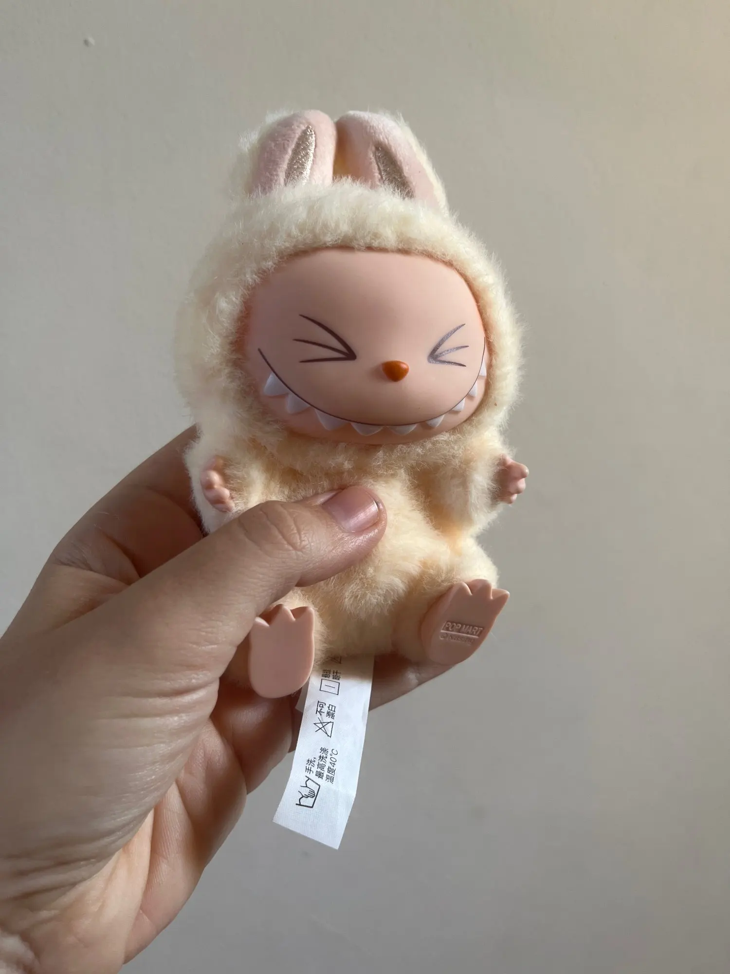 The plush toy is cute, Labubu in pink and cool.