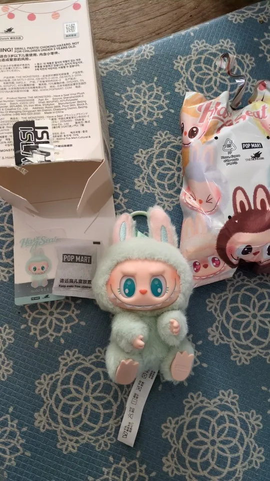 It's cute, the green Labubu plush toy is cool.